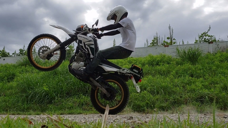 腕を伸ばせば腰も後ろへ行き、今まで以上にバイク全体の重心がリアに傾くはずです。
